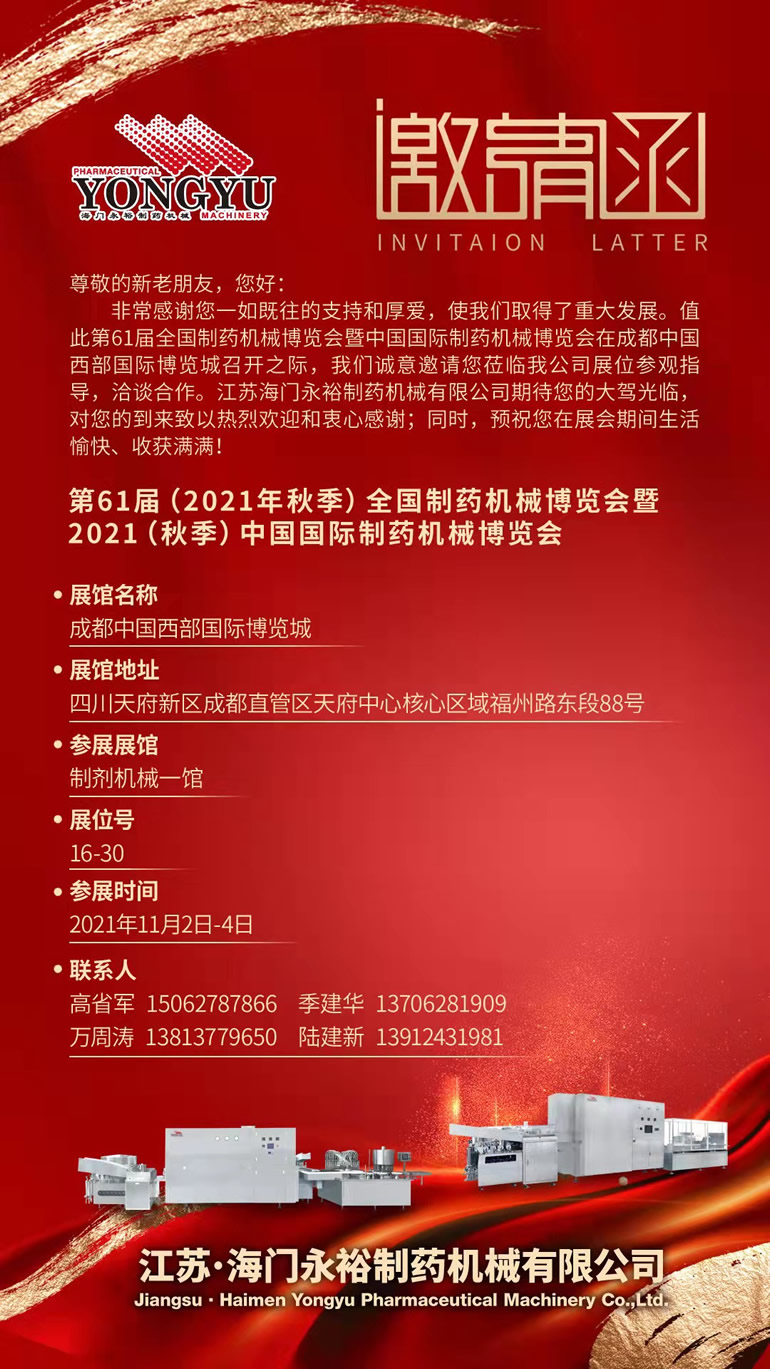 第61届(2021年秋季)全国制药机械博览会暨中国国际制药机械博览会即将启幕