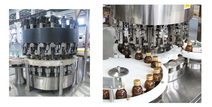 本机符合“cGMP”要求,适用于西林瓶铝盖或铝塑组合盖的封口。自动完成送瓶、送盖,戴盖、柔性单刀或三刀滚动压盖封口,使铝盖封口严密而光滑;调换少量零件可适用于螺口瓶等多规格瓶生产。本机采用电脑板轻触摸按钮控制,进口变频器调速主机,可单机使用,又可联入生产线。