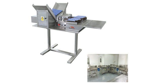 本机符合“GMP”要求,适用于圆形透明瓶的检验,对瓶内药物通过自动转盘送瓶,经二倍放大镜放大后进行自测,将有异物、杂物、封口质量等次品瓶剔除。放大镜下配用白炽节能灯照射,使瓶更加清晰。