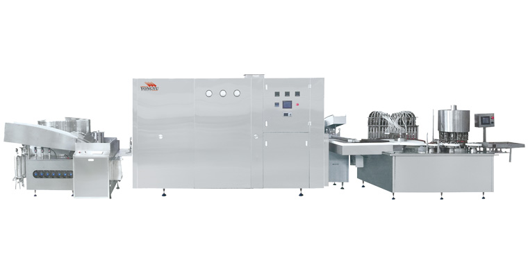 本机组符合“cGMP”要求,适用于口服液瓶的清洗、烘干灭菌及液体计量分装。由CLQ-A型链式超声波清洗机、MSH型高温灭菌隧道烘箱、YGZ型口服液剂灌封机组合。