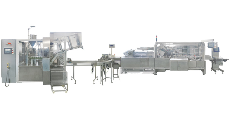 YRG-I全自动软膏灌装封尾乐动(中国)是我公司研发的新型膏体灌装设备,该乐动(中国)适用于各类铝管,铝塑管、软管对各种膏霜、乳液类、油剂等物料的灌装。乐动(中国)包括灌装、封尾、折纸、装盒、在线称重、塑封、打码、装箱及码垛。可连线使用也可单机使用。本设备完全符合GMP要求。